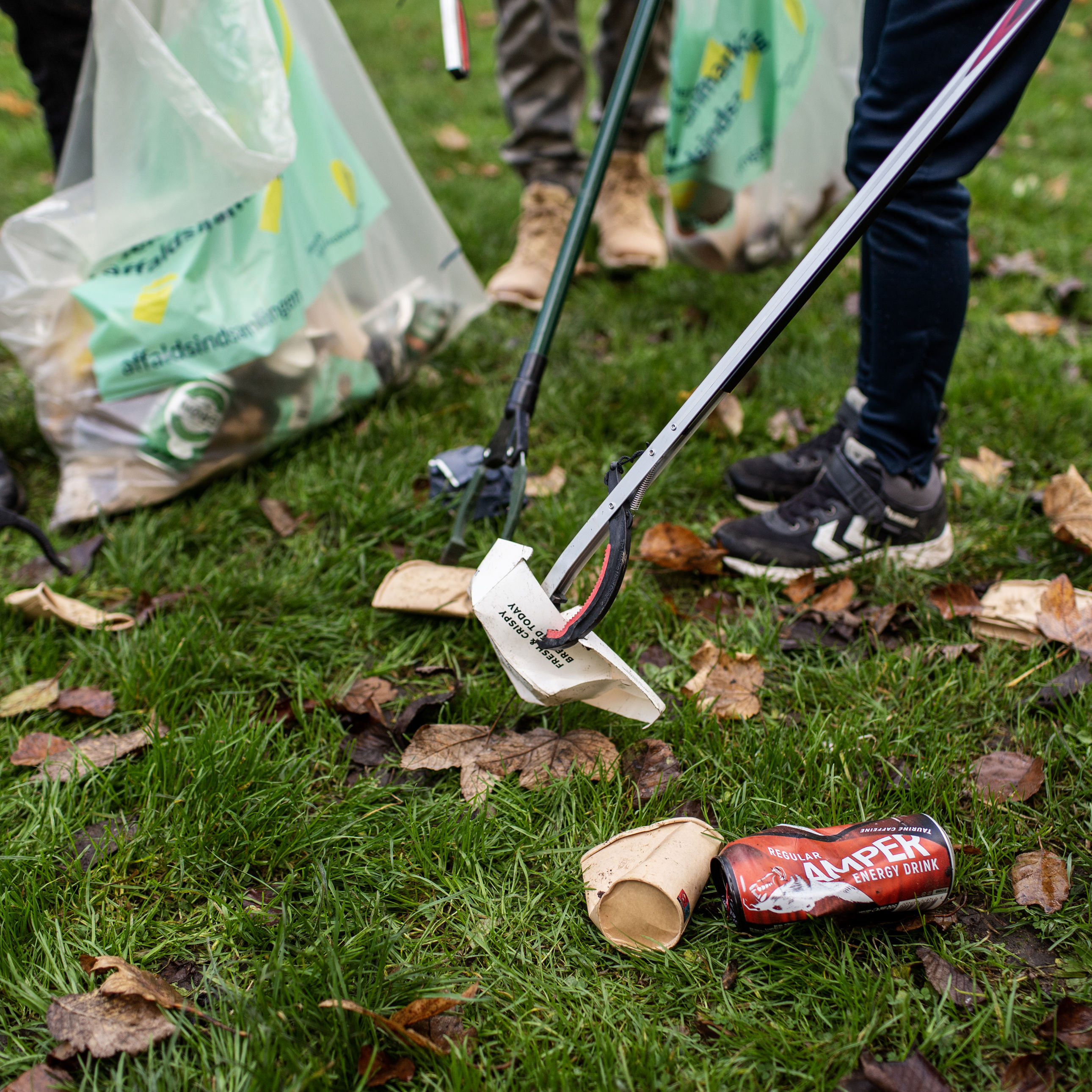 Med kage og lakridspiber lokker Helle og Douglas lokale med ud at samle affald