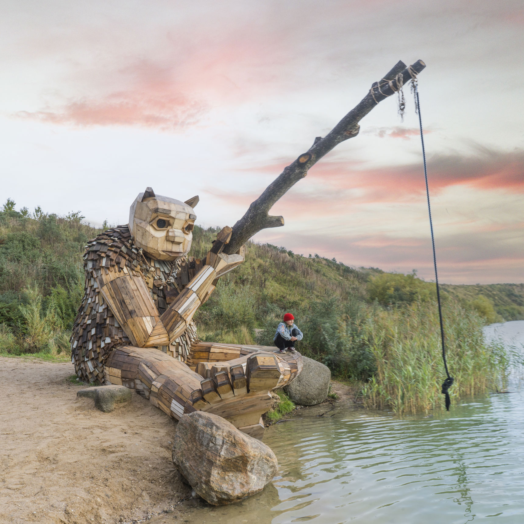 På sin gård i Gadstrup skaber kunstner, designer og forfatter Thomas Dambo af genbrugstræ de gigantiske trolde, som børn og voksne flokkes om at finde i naturen.