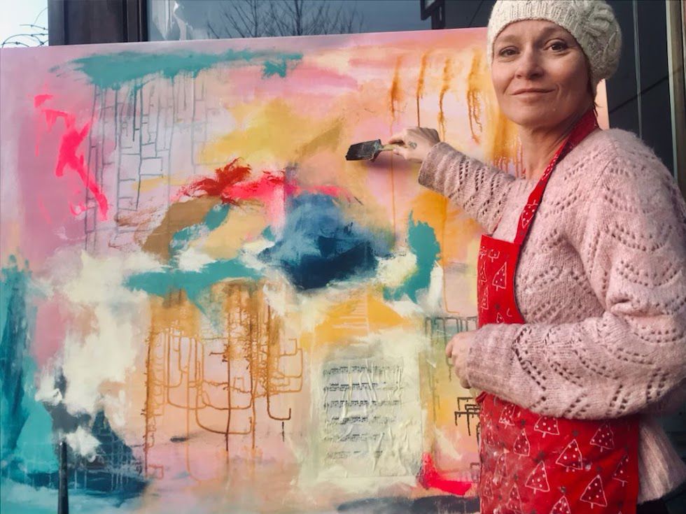 Kunstner og terapeut Lova Lenora Lindkvist Okholm maler billeder på brugte lærreder. I hele sit virke er hun optaget af at mindske sin affaldsmængde.