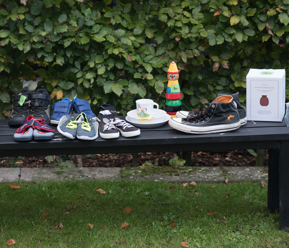 I Børnehuset Ravnens byttebiks kan familier donere børnenes brugte fodtøj, flyverdragter og legesager til andre og finde det, de selv står og mangler.