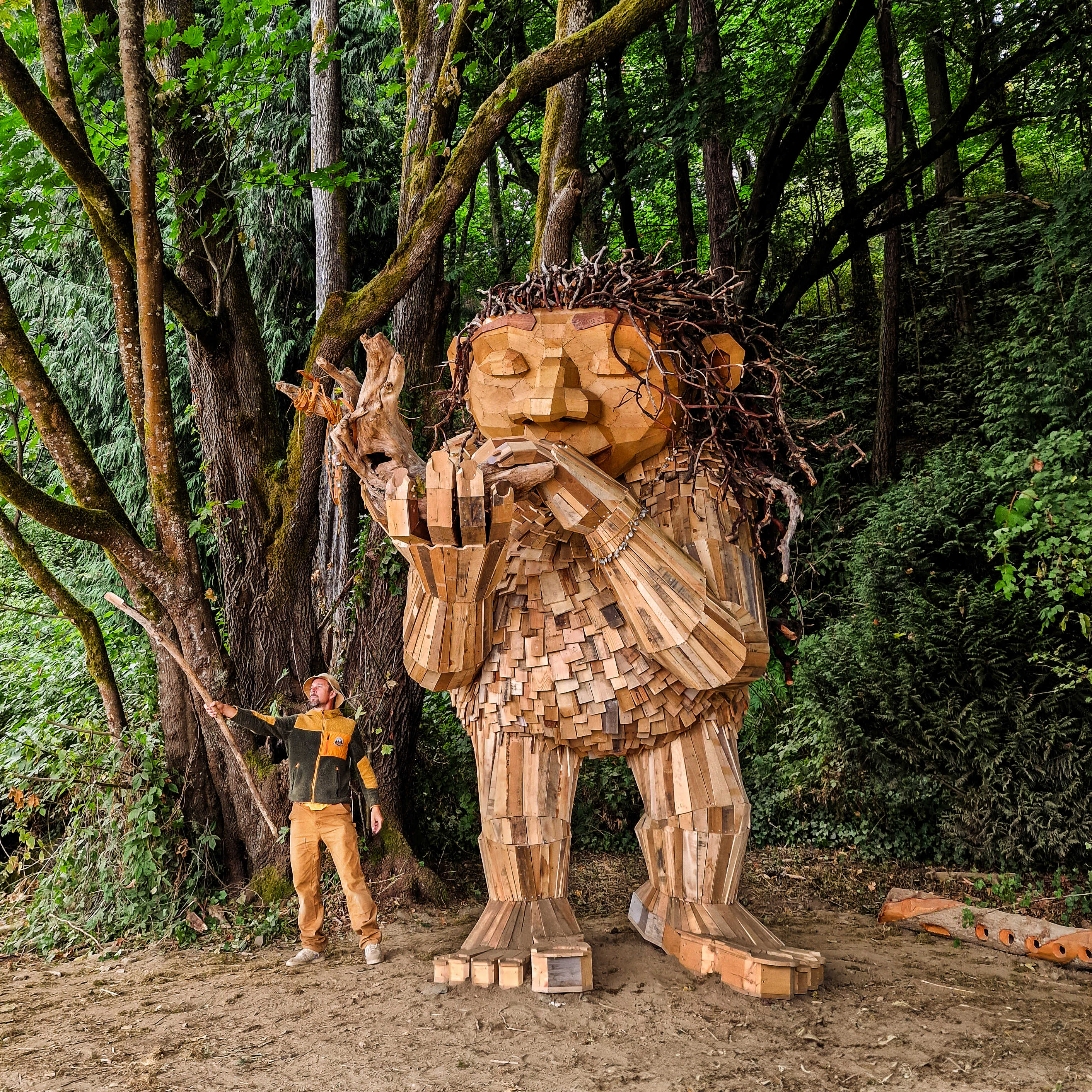 Thomas Dambo med trolden Idun i Lincoln Park, Seattle WA.