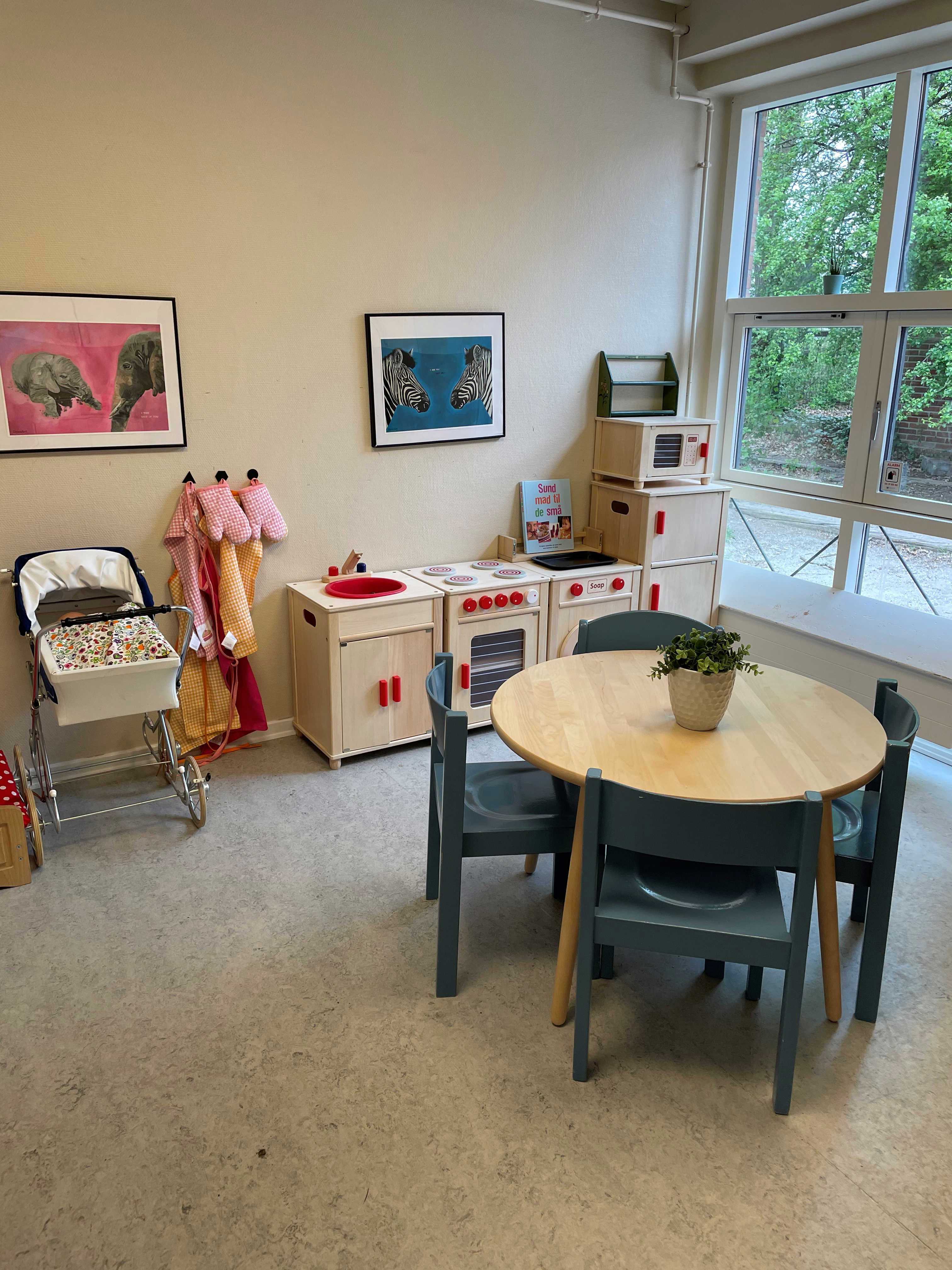 Vi skaber tydelige og inspirerende læringsmiljøer, hvor børnene let kan gå i gang med leg. Indretningen og legetøj udskiftes løbende, så de passer til børnenes behov og nysgerrighed.