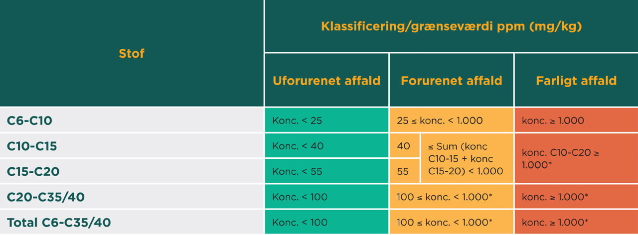 * Grænseværdier for farligt affald vil i nogle tilfælde kunne hæves, se den trinvise procedure nedenfor.